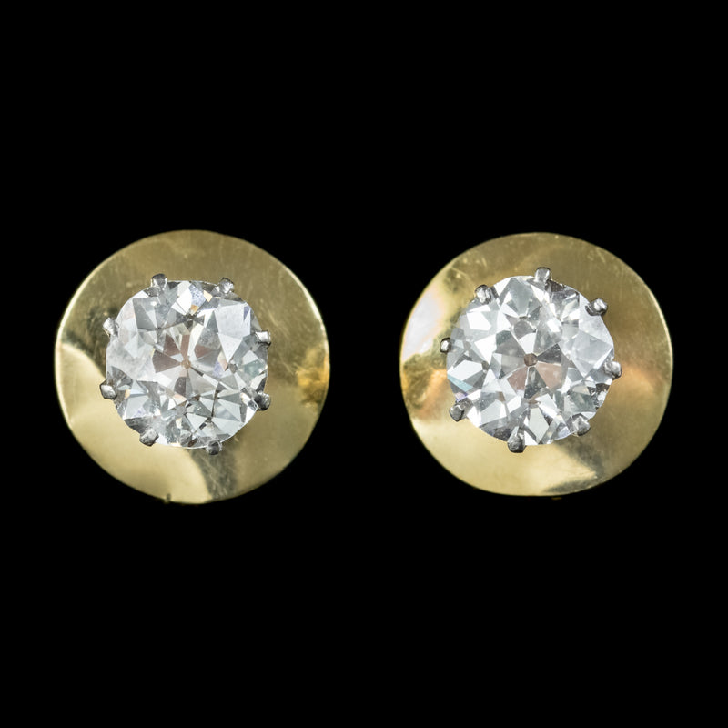 ANTIQUE EDWARDIAN DIAMOND STUD EARRINGS 3.40CT DIAMOND CIRCA 1901 WITH CERT